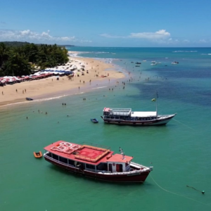 Trancoso surgiu da antiga aldeia jesuíta de São João Batista dos Índios, fundada em 1586. Seus vestígios históricos e o clima rústico-charmoso criam uma atmosfera única, onde simplicidade, luxo e mistério se misturam. A aventura começa no Píer Municipal de Porto Seguro. Em cerca de 1h30 de navegação pelo litoral sul, você admira as praias de Arraial d’Ajuda até chegar ao destino. Praia dos Coqueiros: Nosso ponto de parada reúne mar azul-turquesa, águas calmas, piscinas naturais na maré baixa e uma longa faixa de coqueiros que garante beleza e sombra natural.